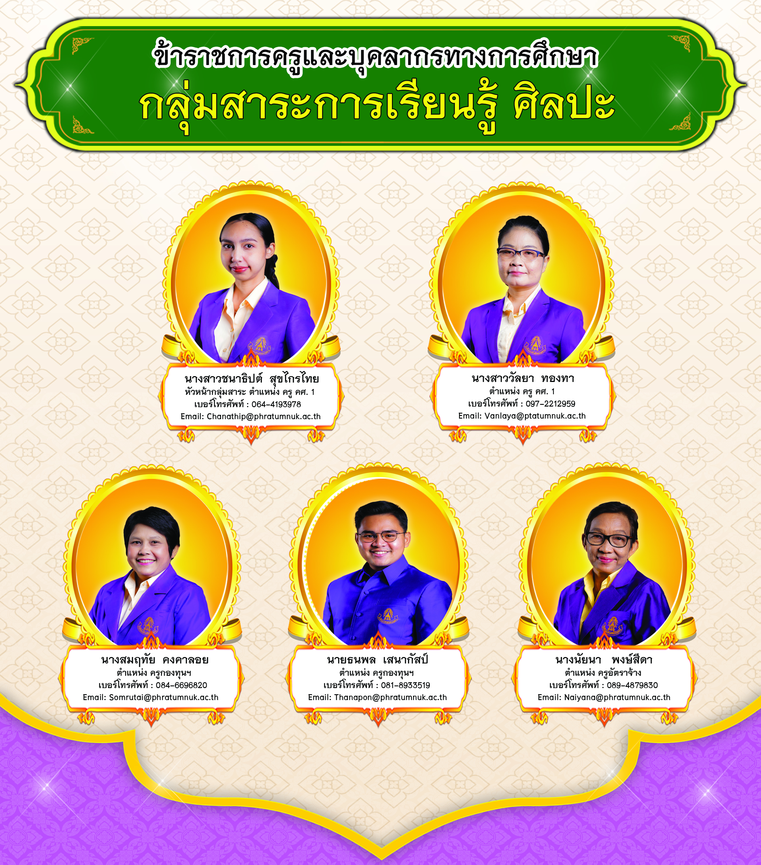 โรงเรียนพระตำหนักสวนกุหลาบ ในพระบรมมหาราชวัง พระนคร กรุงเทพมหานคร 10200 โทร 02-2226561 โทรสาร 02-2226557 Email :phra_psk@phratumnuk.ac.th