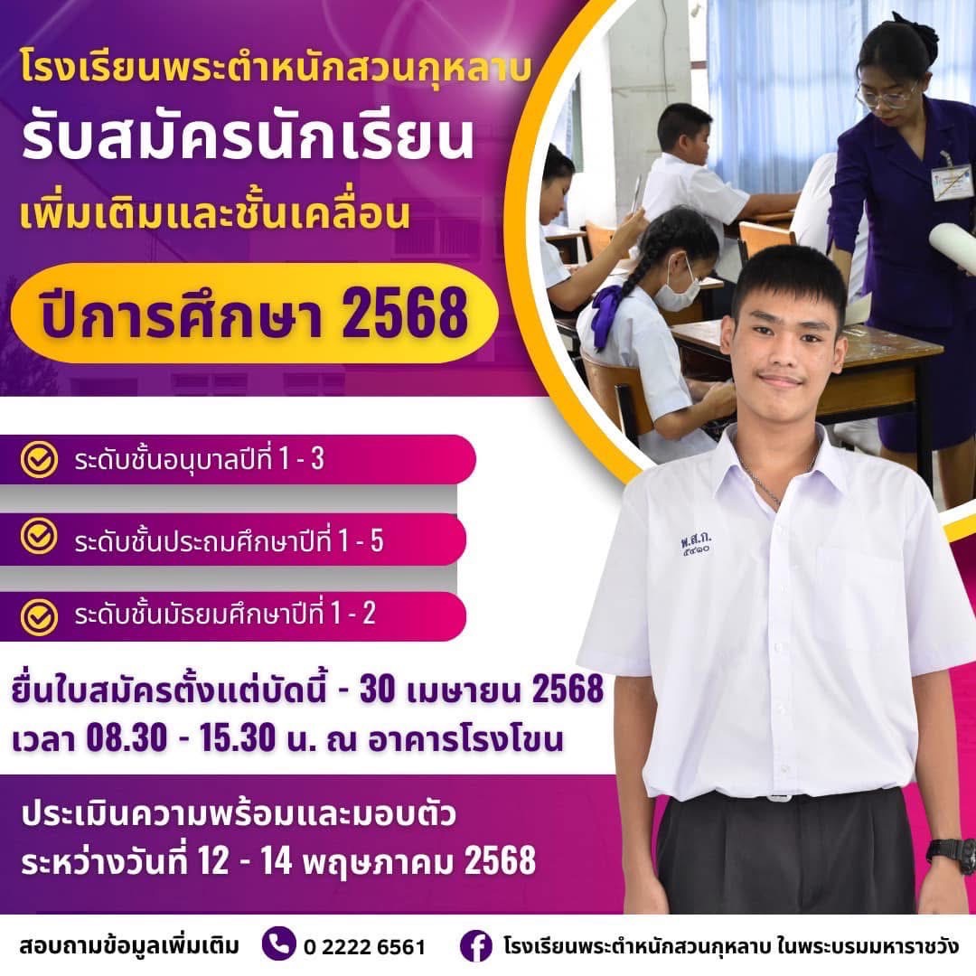 โรงเรียนพระตำหนักสวนกุหลาบ ในพระบรมมหาราชวัง พระนคร กรุงเทพมหานคร 10200 โทร 02-2226561 โทรสาร 02-2226557 Ema il :phratumnaksuankularb@gmail.com